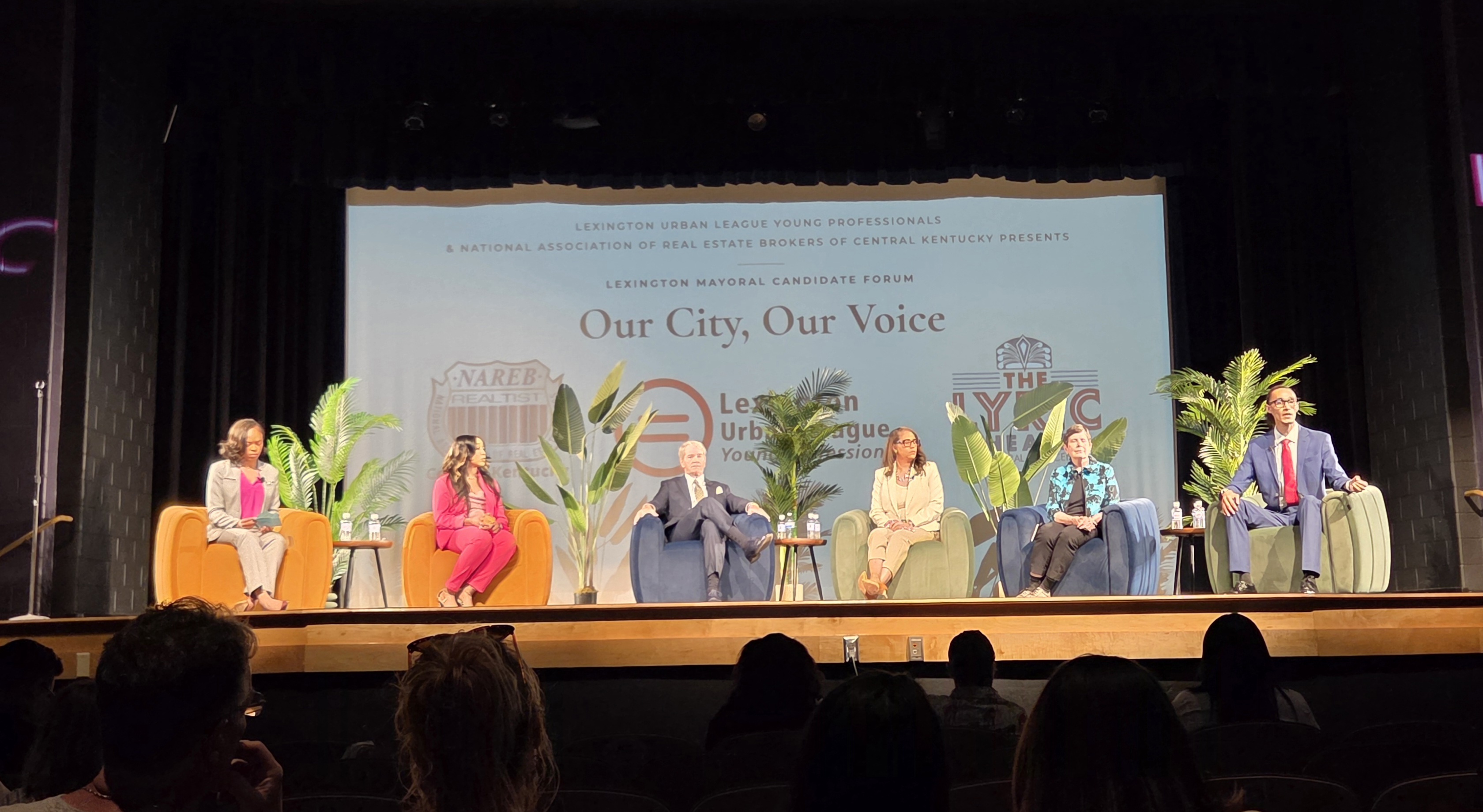 Last night, the Lexington Urban League Young Professionals and the National Association of Real Estate Brokers hosted a Lexington Mayoral Candidate Forum at The Lyric Theatre. The four candidates who participated, Rachel Carter, Mayor Linda Gorton, Greg O’Neal, and Darnell Tagaloa, responded to the moderators’ questions on housing, public safety, infrastructure, and arts and culture in Fayette County. While answers to individual questions varied in their depth and responsiveness to the questions presented, Carter and Gorton clearly demonstrated the firmest grasps of Lexington’s pressing issues.